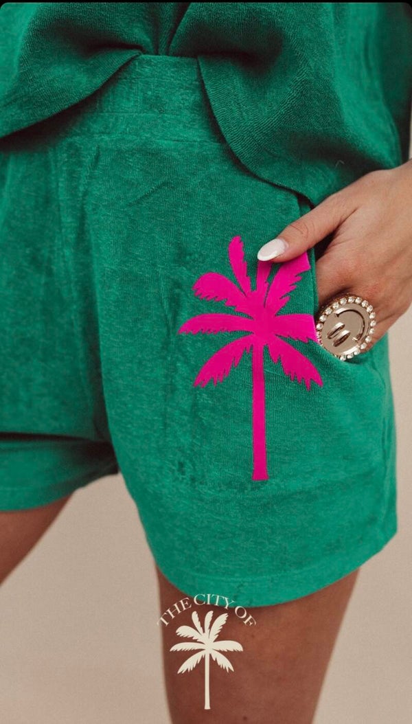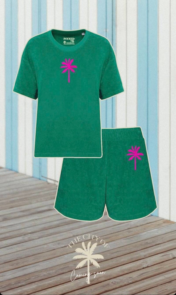 Ontdek onze zomerse basic badstofset! Gemaakt van hoogwaardig materiaal voor ultiem comfort en snelle droging na een duik. Voeg een tropische touch toe aan je strand- of zwembadlook met deze must-have set voor de zomer! Het T-shirt valt iets ruimer uit, wat ideaal is voor het dragen in de zomer.