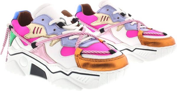 Maxi sneakers zijn helemaal hot! Een sneaker met een hoge / dikke zool als dit model is een must in je schoenenkast. Deze sneaker voor dames is aan de buitenzijde van leer en scuba en de binnenzijde is volledig van leer. Doe mee met de trend!