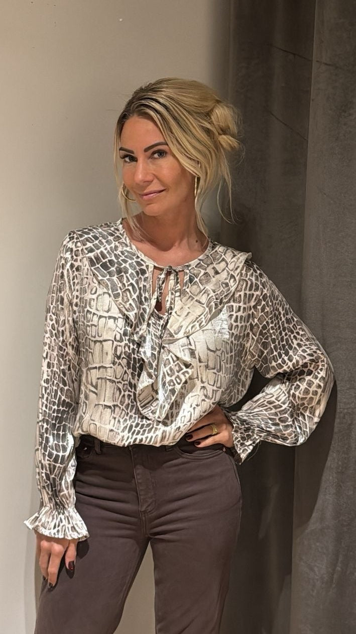 Stijlvolle blouse met trendy crocodille print. Perfect voor een chique en opvallende look!