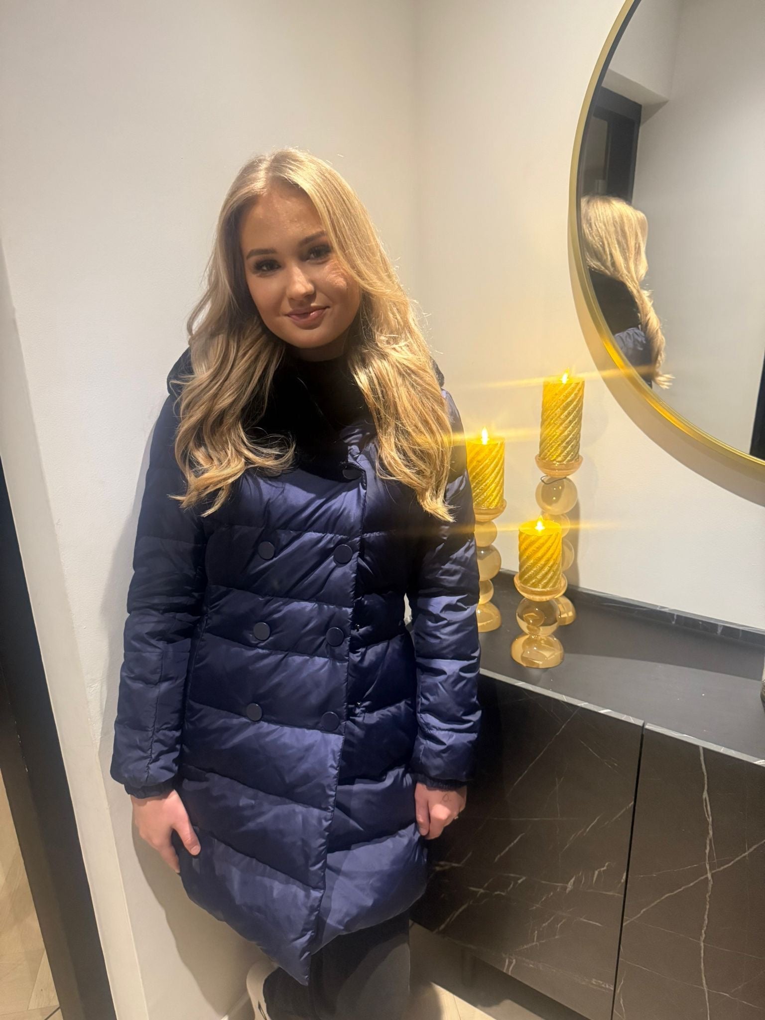 Deze elegante half lange jas Azura combineert warmte met verfijning en is de perfecte keuze voor de koude wintermaanden. De donkerblauwe kleur met contrasterende zwarte kraag geeft de jas een luxe en moderne uitstraling, terwijl de half lange lengte zorgt voor optimale bescherming tegen de kou.