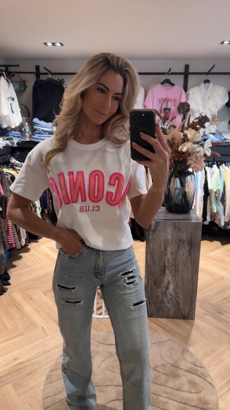 Fris, vrouwelijk en vol persoonlijkheid — het T-shirt Iconic White Pink is een tijdloze blikvanger. De klassieke combinatie van wit en roze geeft je outfit een lichte, zomerse vibe. Draag hem los, getuckt of geknoopt — altijd goed.